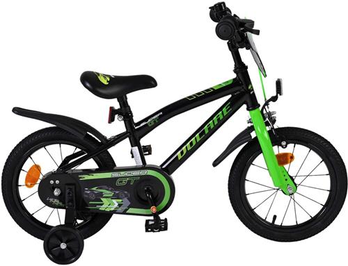 Maak leren fietsen een onvergetelijk avontuur met de Volare Super GT 14 inch kinderfiets! Deze stoere jongensfiets, uitgevoerd in een stijlvolle combinatie van zwart en groen, biedt niet alleen een geweldige uitstraling, maar ook optimale veiligheid voor uw kind. De fiets is uitgerust met zowel een handrem als een terugtraprem, waardoor uw kleintje veilig kan afremmen wanneer dat nodig is. Bovendien zorgt de gesloten kettingkast ervoor dat de ketting altijd beschermd is, en zijn de afneembare zijwieltjes ideaal voor een zachte start.