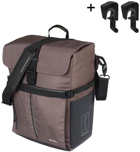 Basil Move - Fietsschoudertas - MIK Hooks - 15L - Incl. regenhoes - Gerecycled materiaal - Bruin