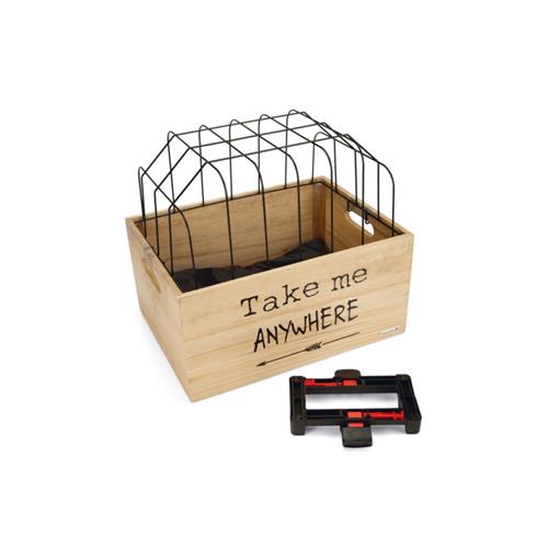 De mand is vervaardigd uit duurzaam hout en is voorzien van een zacht zwart kussen gemaakt van stevig nylon. Dit kussen zorgt voor extra comfort, wat het voor jouw hond heerlijk maakt om een ritje te maken. De handige draadkap voorkomt dat je huisdier uit de mand kan springen, zodat je met een gerust hart kunt genieten van je fietstocht.