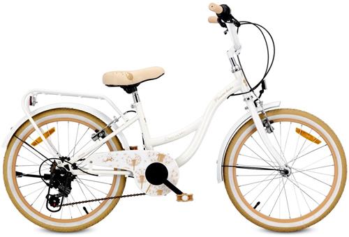 Flower Bike Fiets voor een meisje van 6 tot 10 jaar, 20 inch Wit Beige, 6 versnellingen Shimano, kinderfiets in hoogte verstelbaar
