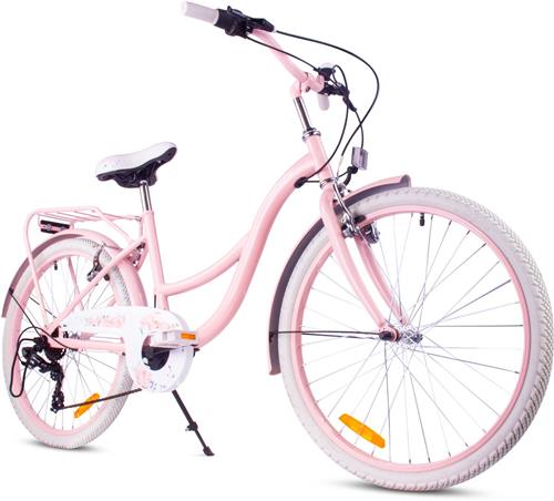 Laagste prijs € 248,77 voor Flower Bike Kinderfiets 24 inch meisjes van 8 tot 12 jaar, Roze, Fiets voor een meisje met 7 versnellingen, bagagedrager, metalen spatborden, V-brake, kettingkast is gemeten op 19-06-2025.