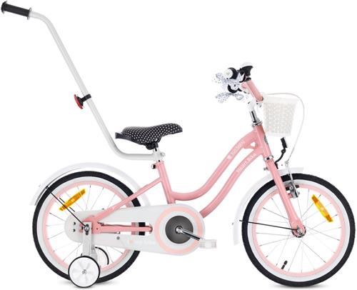 Heart Bike Fiets voor een meisje van 4 tot 6 jaar, 16 inch Roze, met fietsbel, zijwieltjes, duwstang en stuurmandje
