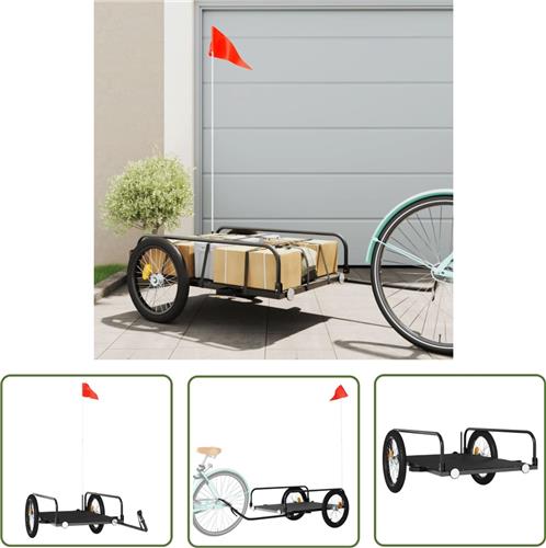 The Living Store Fietstrailer 135x70x37 cm ijzer zwart - Fietskar - Fietskar Kopen - Fietstransport - Karretje Voor Fiets - Zwaar Laden Fiets