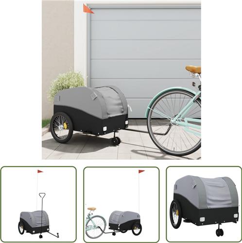 The Living Store Fietstrailer 45 kg ijzer zwart en grijs - Fietskar - Fietsaanhanger - Transporteur - Zwaar Transport - Karretje