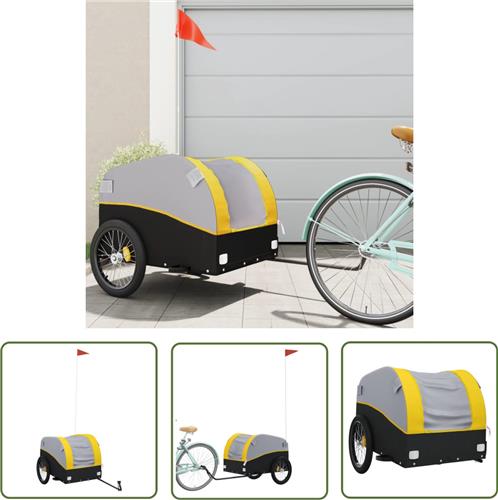 The Living Store Fietstrailer oxford stof en ijzer geel en zwart - Fietskar - Fietsaanhanger - Transportwagen - Zwaartransport - Oxfordsstof