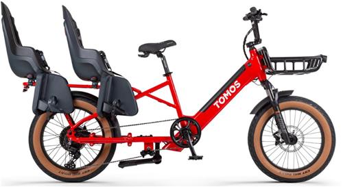 TOMOS E-Cargo Fat 2 Longtail Elektrische Fatbike - Gratis Voordrager - Gratis Bamboe Plaat - Gratis Zitkussen - 20 Inch - 250W Motor - 10 Versnellingen - 90 km Actieradius - Hydraulische Schijfremmen - Glossy Red